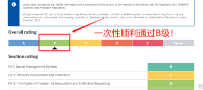 在驗廠之家老師專業技術、全程一對一跟進耐心細致輔導以及公司全體員工配合下,一次性順利通過BSCI驗廠取得B級報告,為將來公司發展奠定了良好的發展基礎,既開拓了市場同時也增加了消費者對公司的信賴,在這里再次祝賀遼寧天之德服飾有限公司2022年一次性成功通過BSCI驗廠取得B級報告,同時也期待未來再次與驗廠之家合作!