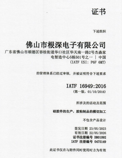 祝賀佛山市根深電子有限公司2023年順利通過IATF16949認證