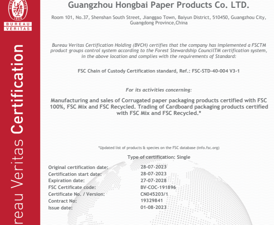 祝賀廣州宏柏印刷包裝有限公司2023年順利通過BV- FSC認(rèn)證