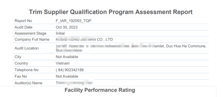 當前位置:首頁 > 驗廠案例 > 祝賀HONGKONG俊文(越南)有限公司2023年順利通過ITS-TQP驗廠審核并且獲得94分