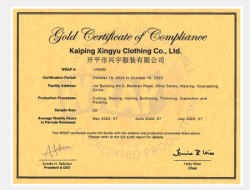 • 祝賀開平市興宇服裝有限公司2022年順利通過WRAP認證