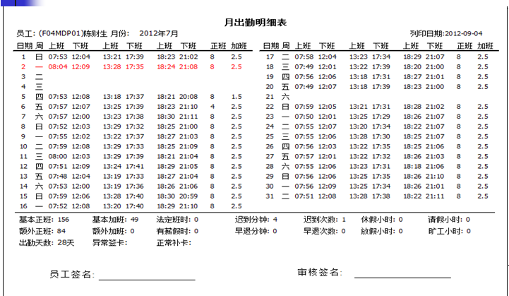 考勤管理-月出勤明細(xì)表(頁(yè)式)