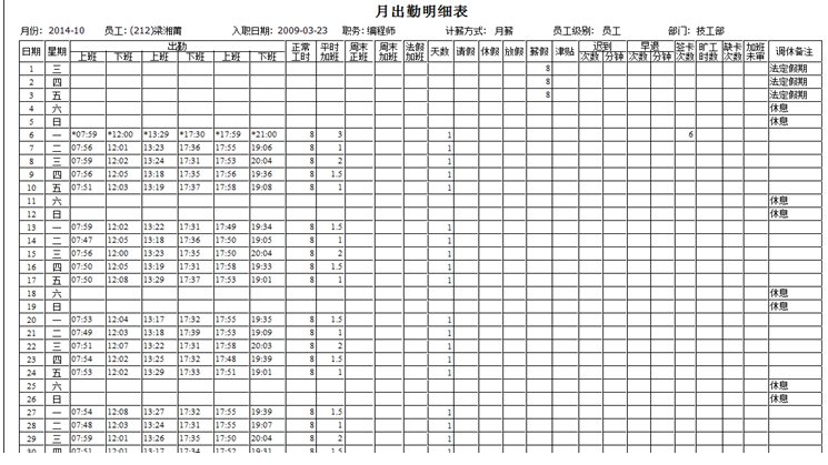 考勤管理-出勤明細(xì)表