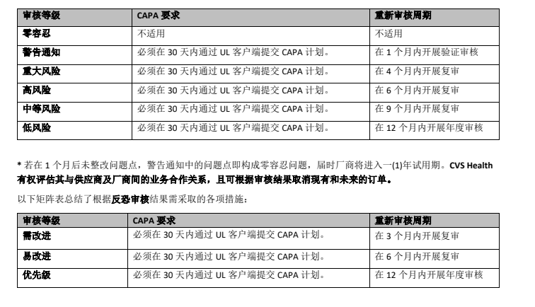 審核后,存在一個或多個不符合項問題點的廠商必須: